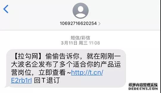 【拉勾案例】用戶之前搜索過相關職位,對崗位有一定需求度。拉勾利用用戶的好奇心理,定向推送相符內容,極大程度引發用戶回流。