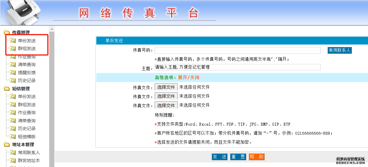 這種情況推薦使用網(wǎng)絡(luò)傳真平臺軟件系統(tǒng)。 只要電腦能上網(wǎng),無需傳真機(jī)和任何其他軟硬件,也不用占用電話線,即用電腦網(wǎng)絡(luò)發(fā)傳真;可以單份發(fā)送傳真也可以群發(fā)傳真,還可以一次發(fā)多份傳真文件。