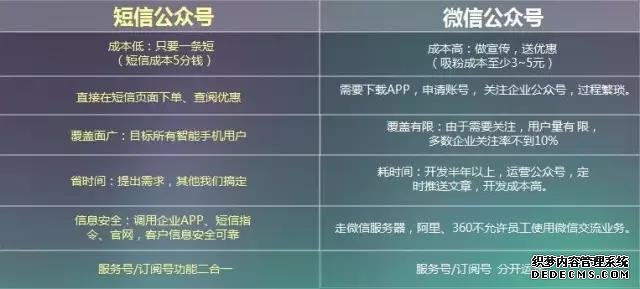 圖為 短信公眾號與微信公眾號區(qū)別