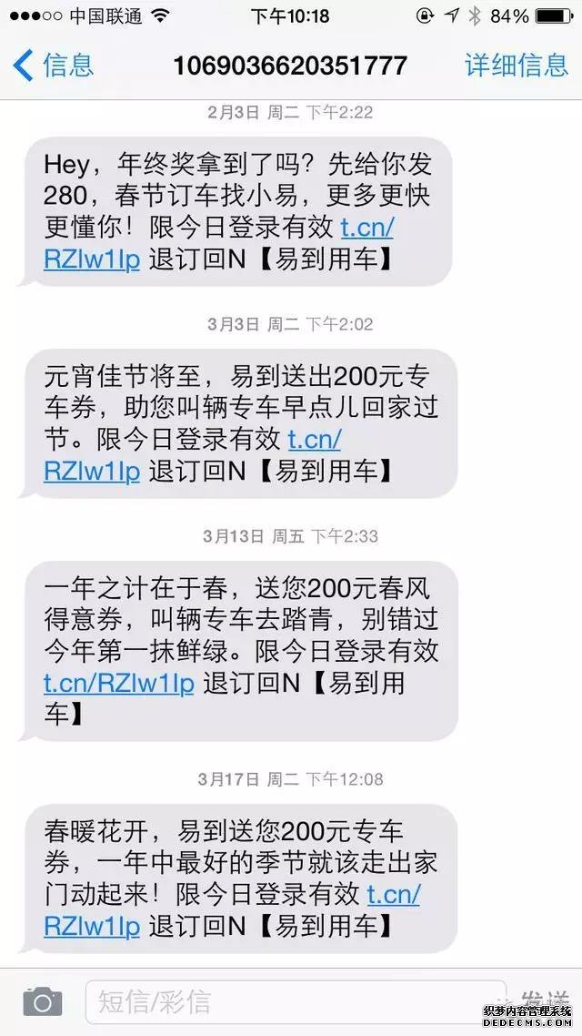 不建議把企業或者產品的名字放在短信最前面的,用戶一看開頭就知道廣告可能不會繼續讀下去了。