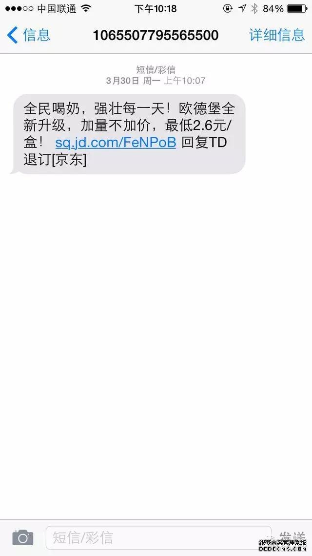 大數據!精準推送!我幾個月前買過這個牌子的牛奶,所以這條短信是有針對性的推廣的,不是全員發送,做推廣最需要的就是精準,有精準才有轉化率。