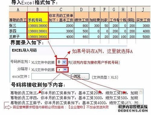 巨象企信通短信平臺軟件的定制短信功能,能實現不同稱呼、不同內容的短信群發(變量短信群發),如批量群發工資條、快遞單號等EXCEL表格數據短信。