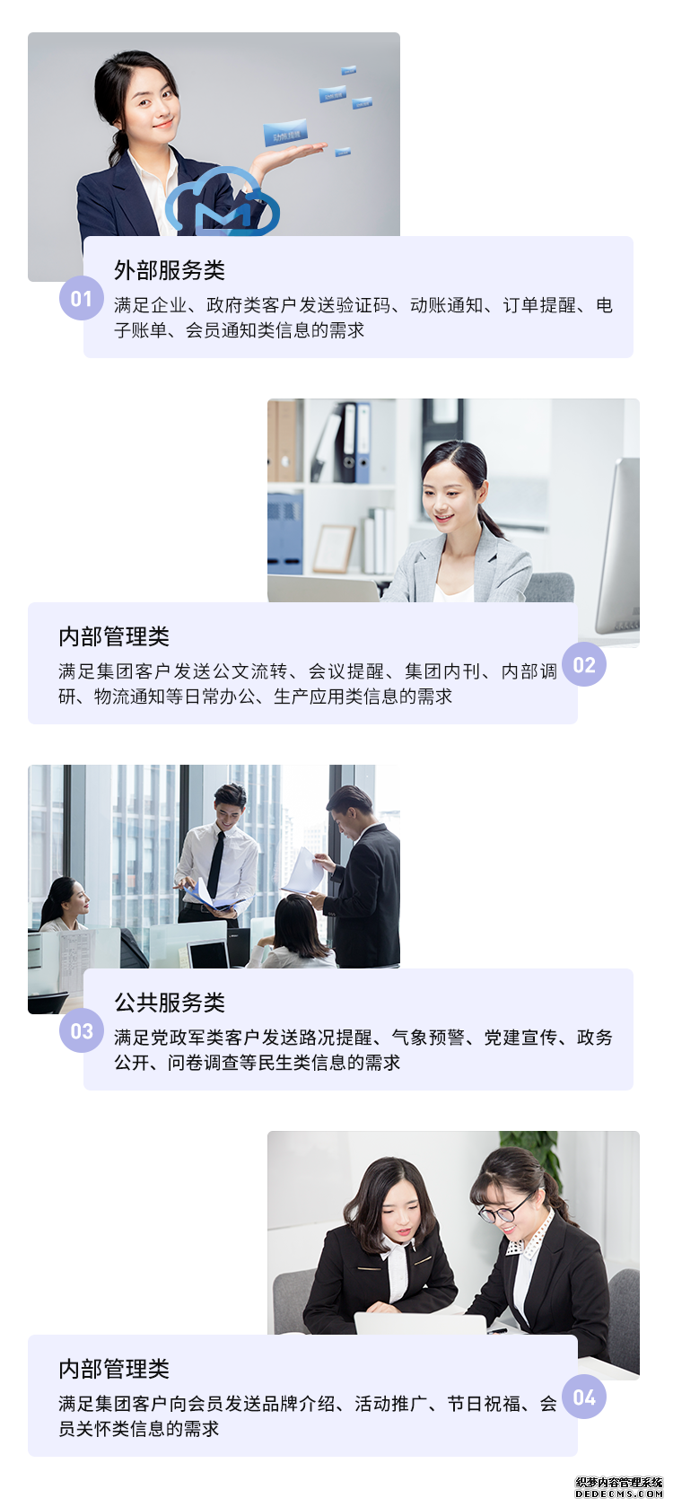 巨象企信通短信群發(fā)平臺(tái)主要面向互聯(lián)網(wǎng)、物流、政務(wù)、社衛(wèi)等行業(yè)客戶提供驗(yàn)證碼下發(fā)、密碼下發(fā)、支付驗(yàn)證、物流動(dòng)態(tài)等服務(wù)型通知短信,適合沒(méi)有內(nèi)部IT系統(tǒng),需要快速、簡(jiǎn)易的短信發(fā)送通道的中小微企業(yè)客戶,便于企業(yè)快速獲得短消息發(fā)送能力。