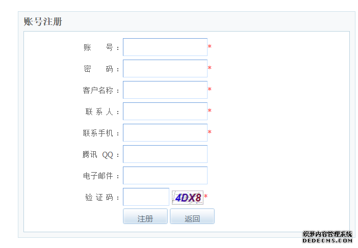 二、點(diǎn)擊免費(fèi)注冊后會跳轉(zhuǎn)到賬戶注冊頁面,如下圖所示,輸入自編的短信賬號(建議是方便自己記憶的手機(jī)號、公司中英文簡稱、拼音)、方便記憶的密碼、公司名稱、聯(lián)系人、驗(yàn)證碼,即可完成注冊。