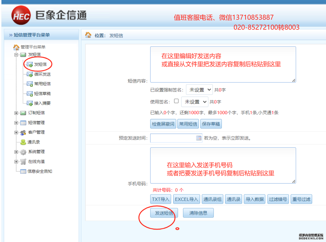 下面我們來具體說明用企信通短信平臺完成各類資訊通知短信群發(fā)的操作步驟和方法,一般2-5分鐘即可熟練使用。