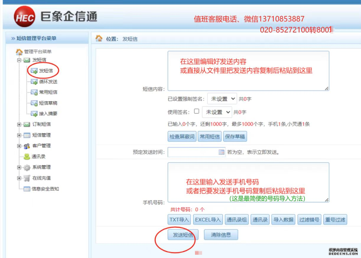 企信通批量短信發(fā)送平臺注冊和登錄地址是 https://sms.hechina.cn