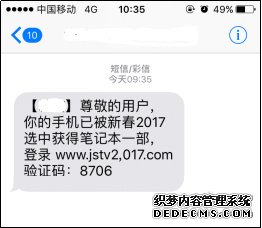 春節(jié)將至,又有不法分子打著“新春中獎(jiǎng)”的旗號發(fā)送詐騙短信。短信中含有釣魚網(wǎng)址,用戶點(diǎn)擊鏈接填寫個(gè)人資料后即會(huì)被不法分子獲取。廣州巨象提醒大家:收到此類短信一定要多加留意,不點(diǎn)擊短信中的可疑鏈接,不在陌生網(wǎng)站輸入個(gè)人重要隱私信息。
