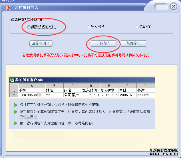 注意:如果為EXCEL格式請不要帶任何格式,否則導(dǎo)入會不成功,